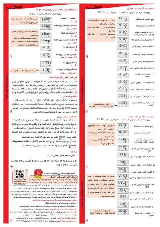 ساعت فرمان ماهیانه هفتگی دیجیتال شیوا امواج