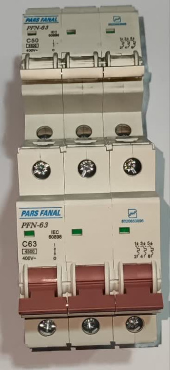 مینیاتوری سه فاز 63 آمپر پارس فانال با ظرفیت قطع 4.5کیلو آمپر